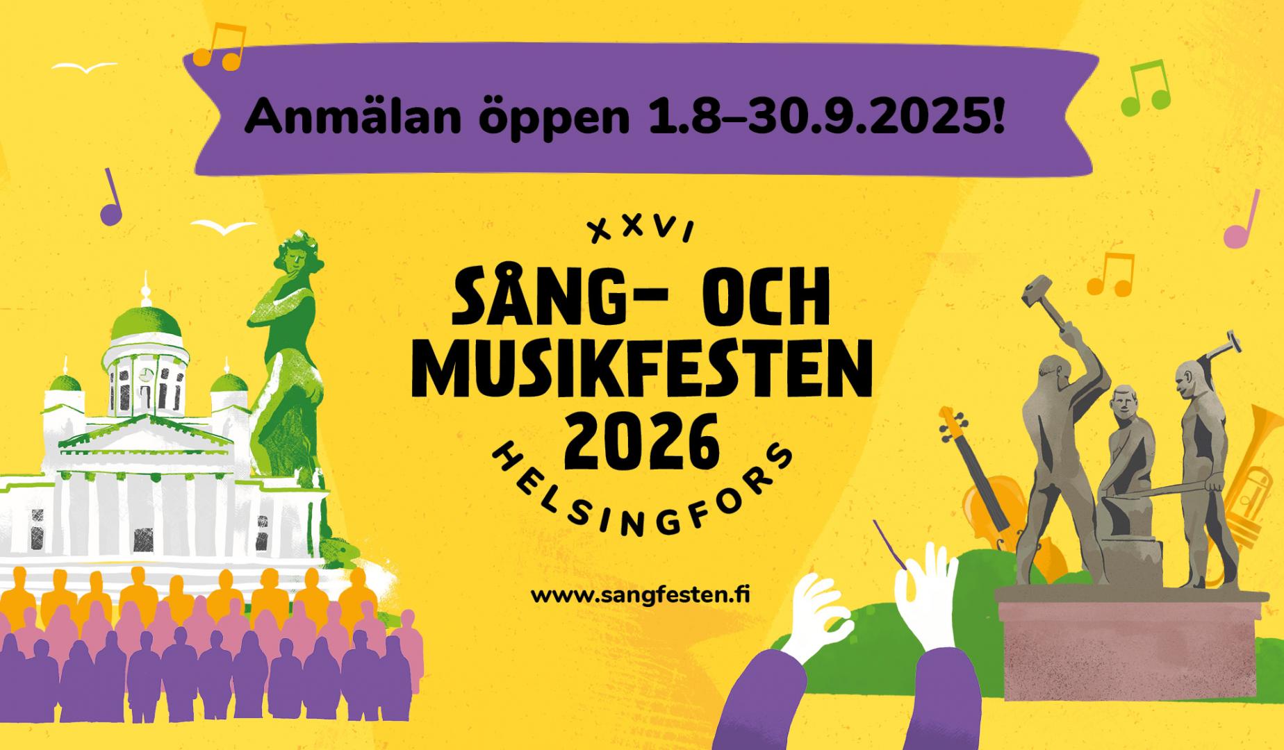 I augusti öppnar anmälan till Sång- och musikfesten igen! Vi välkomnar alla medlemskörer och -orkestrar, icke-medlemskörer, skol-, musikinstitut- och kyrkokörer till Sångfesten!